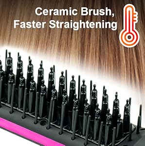 - Ceramic heated plates surround individual ionic bristles that simultaneously section and straighten as they glide down the hair. Powerful, instant ceramic heat is evenly distributed across the surface to deliver super straight, shiny hair in one pass.